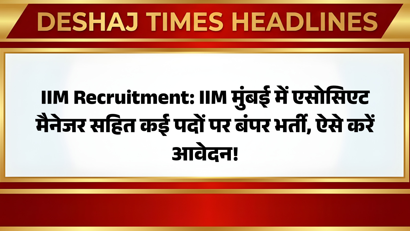 # IIM Recruitment: IIM मुंबई में एसोसिएट मैनेजर सहित कई पदों पर बंपर भर्ती, ऐसे करें आवेदन!