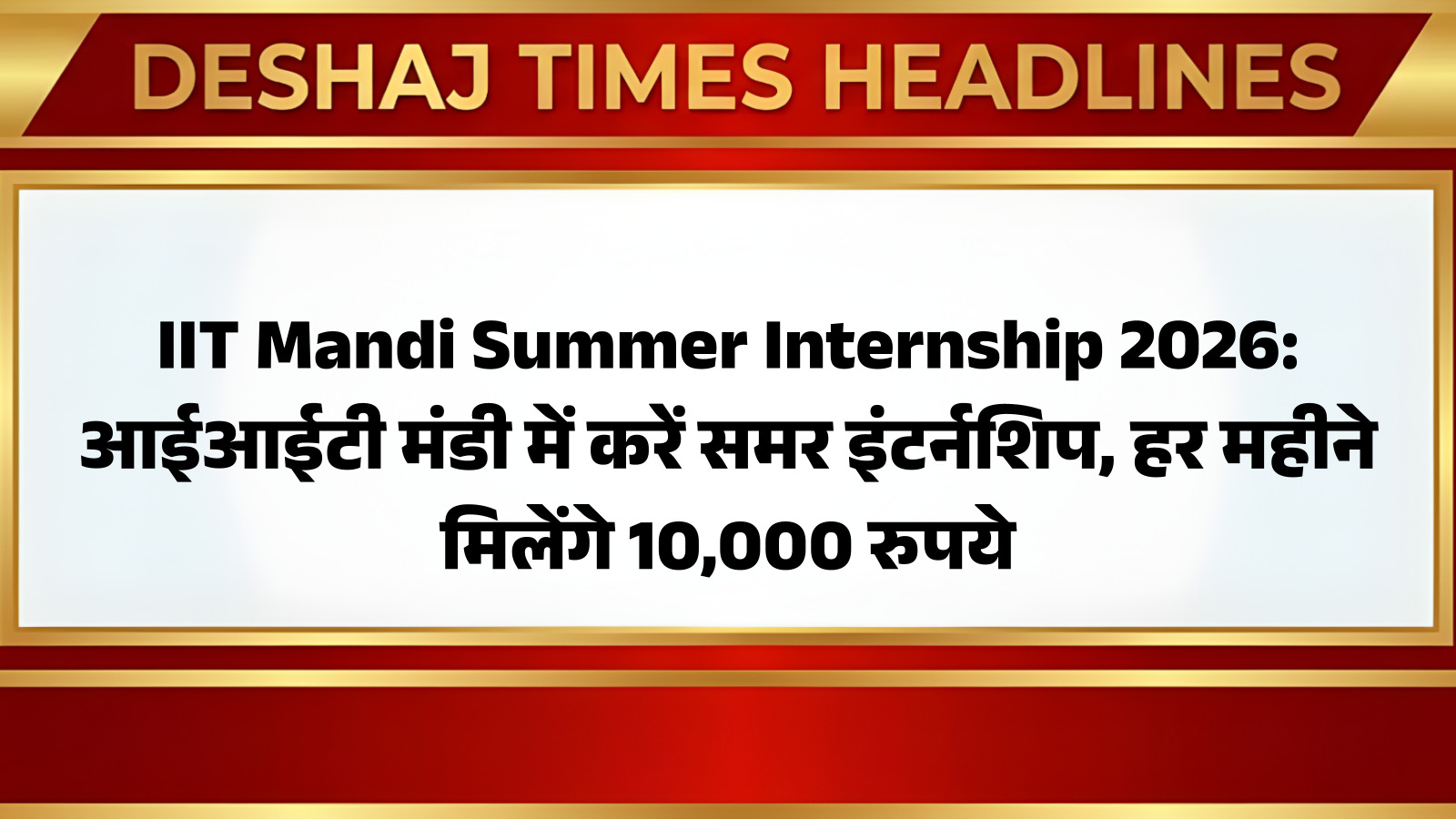 आईआईटी मंडी समर इंटर्नशिप प्रोग्राम 2026 के लिए आवेदन प्रक्रिया शुरू हो चुकी है। आप पढ़ रहे हैं देशज टाइम्स बिहार का N0.1।