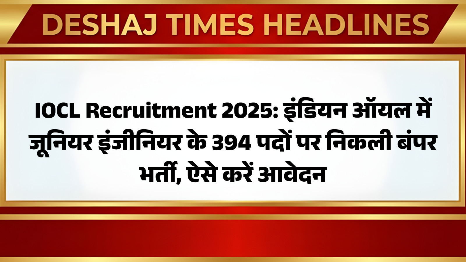 IOCL Recruitment 2025: इंडियन ऑयल में जूनियर इंजीनियर के 394 पदों पर निकली बंपर भर्ती, ऐसे करें आवेदन
