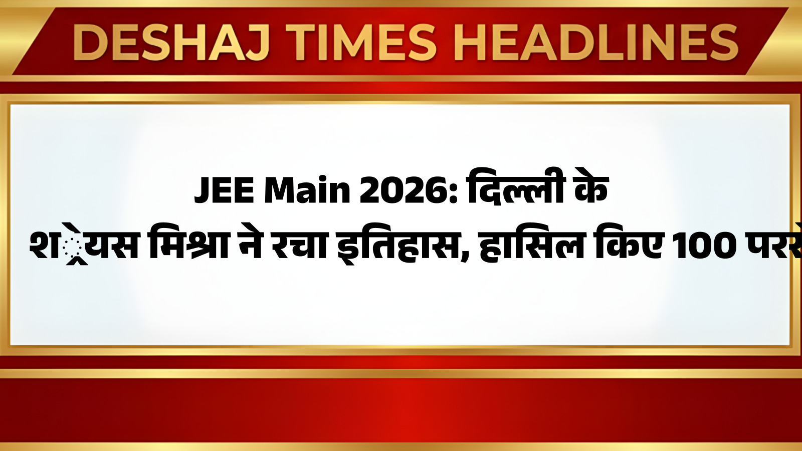 देश की सबसे प्रतिष्ठित इंजीनियरिंग प्रवेश परीक्षा JEE Main 2026 के परिणाम जारी होने के बाद, राजधानी दिल्ली एक बार फिर सुर्खियों में आ गई है। इस वर्ष के नतीजों में कुल 12 छात्रों ने 100 परसेंटाइल हासिल किए हैं, जिनमें दिल्ली के श्रेयस मिश्रा का नाम प्रमुखता से उभरा है। 13 लाख से अधिक परीक्षार्थियों के बीच, श्रेयस ने यह शीर्ष स्थान प्राप्त कर न केवल अपने परिवार, बल्कि पूरे शहर का गौरव बढ़ाया है। आप पढ़ रहे हैं देशज टाइम्स बिहार का N0.1। नेशनल टेस्टिंग एजेंसी (NTA) द्वारा जारी परिणामों में परसेंटाइल स्कोर भी सार्वजनिक किए गए हैं, जो इस साल की कड़ी प्रतिस्पर्धा को दर्शाते हैं। श्रेयस की यह उपलब्धि लाखों छात्रों के लिए प्रेरणा का स्रोत बन गई है।