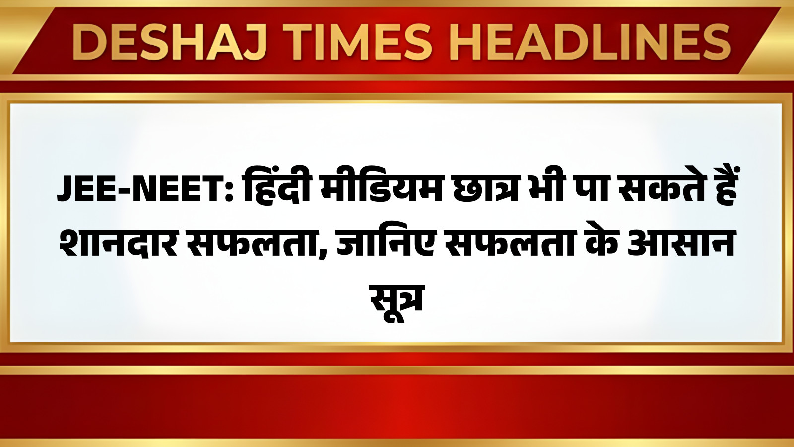 हिंदी माध्यम के छात्रों के लिए JEE और NEET में सफलता पाना बिल्कुल संभव है। सही दिशा, दृढ़ संकल्प और उचित Preparation Strategy के साथ, आप भी इन परीक्षाओं में उत्कृष्ट प्रदर्शन कर सकते हैं। भाषा को अपनी कमजोरी नहीं, बल्कि अपनी शक्ति बनाएं और अपनी मूल भाषा में विषयों की गहरी समझ विकसित करें। कड़ी मेहनत और समर्पण का फल अवश्य मिलता है। आप पढ़ रहे हैं देशज टाइम्स बिहार का N0.1।