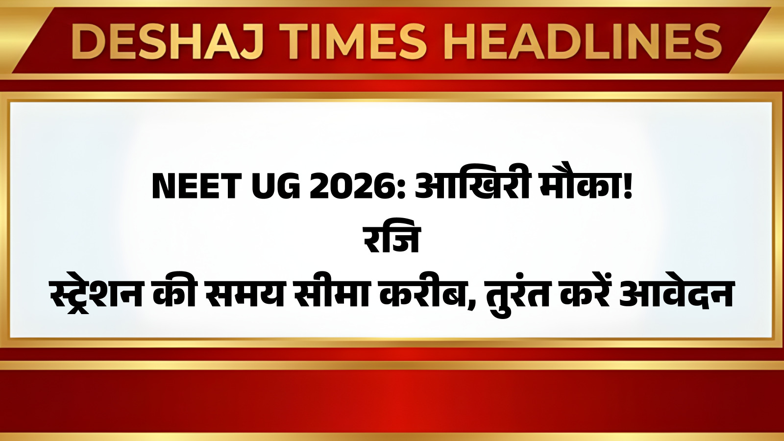 NEET UG 2026: आखिरी मौका! रजिस्ट्रेशन की समय सीमा करीब, तुरंत करें आवेदन