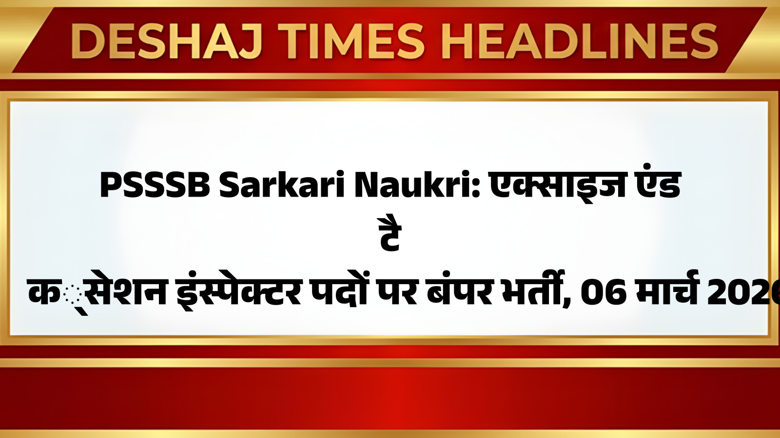 PSSSB Sarkari Naukri: एक्साइज एंड टैक्सेशन इंस्पेक्टर पदों पर बंपर भर्ती, 06 मार्च 2026 तक करें आवेदन