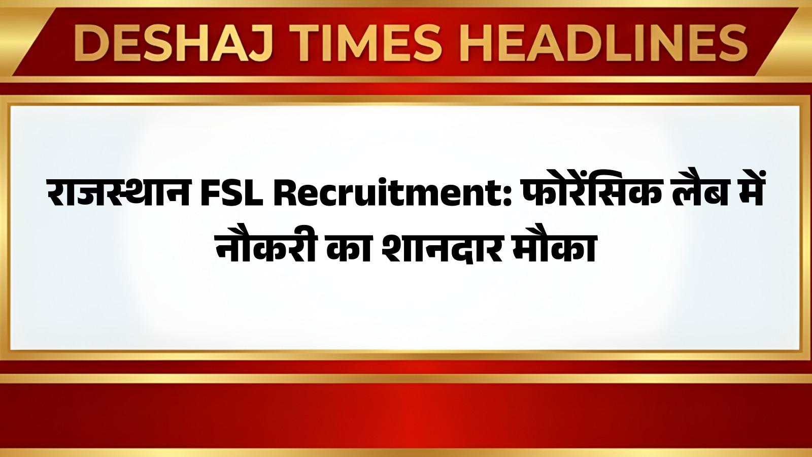 Rajasthan FSL Recruitment: राजस्थान फोरेंसिक लैब में जल्द ही भर्ती प्रक्रिया शुरू होने वाली है, जो युवाओं के लिए सुनहरा अवसर लेकर आई है।