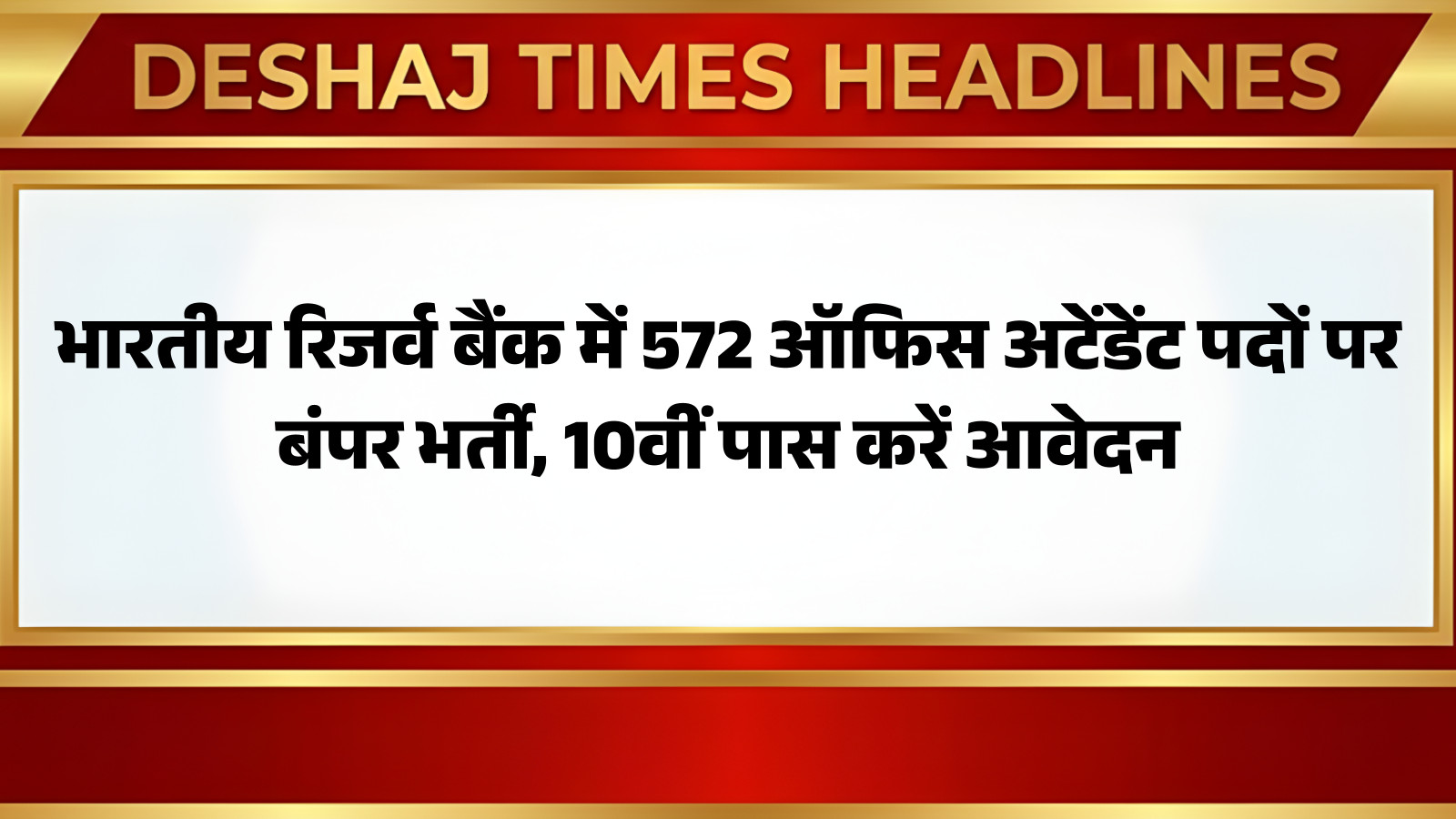 भारतीय रिजर्व बैंक में RBI Recruitment: 572 ऑफिस अटेंडेंट पदों पर बंपर भर्ती, 10वीं पास करें आवेदन