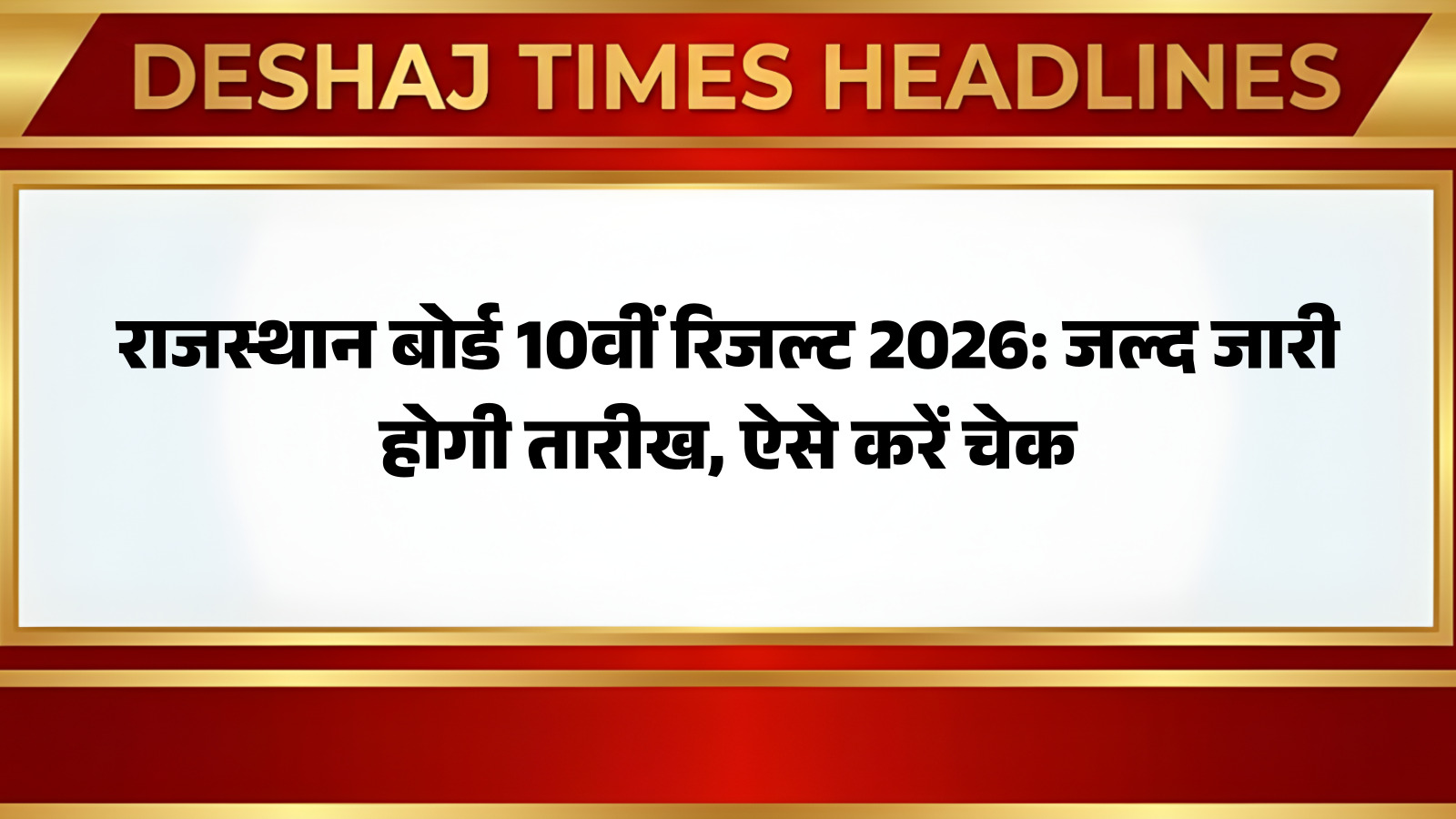 राजस्थान के लाखों विद्यार्थियों के लिए एक बड़ी और राहत भरी खबर सामने आ रही है। कक्षा 10वीं की परीक्षा देने वाले छात्र-छात्राएं लंबे समय से अपने परिणाम का बेसब्री से इंतजार कर रहे हैं और अब यह इंतजार समाप्त होने वाला है। माध्यमिक शिक्षा बोर्ड राजस्थान (RBSE) आज 10वीं और 12वीं बोर्ड परीक्षा 2026 की **रिजल्ट डेट** का ऐलान कर सकता है। उम्मीद जताई जा रही है कि राजस्थान बोर्ड 10वीं का परिणाम 20 मार्च से 25 मार्च के बीच जारी कर दिया जाएगा। हम आपको बताएंगे कि आप अपना परिणाम कैसे देख पाएंगे। आप पढ़ रहे हैं देशज टाइम्स बिहार का N0.1।