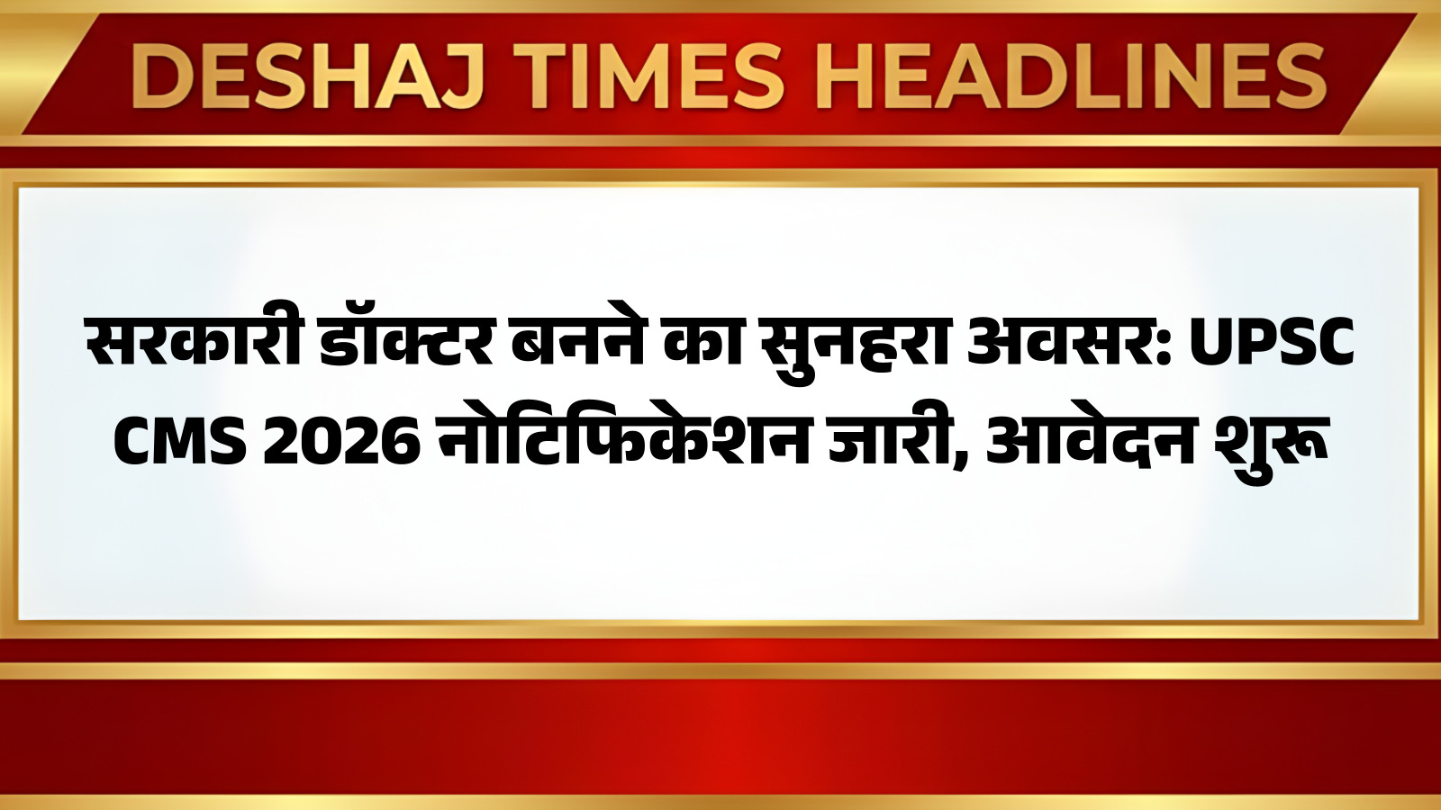 # सरकारी डॉक्टर बनने का सुनहरा अवसर: UPSC CMS 2026 नोटिफिकेशन जारी, आवेदन शुरू