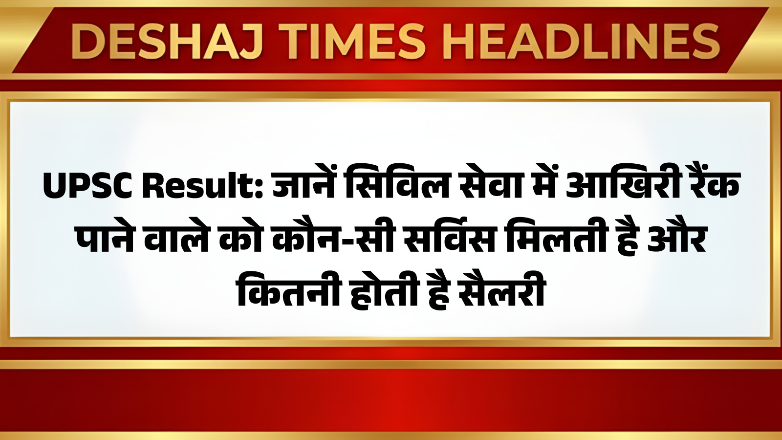 UPSC Result: संघ लोक सेवा आयोग (UPSC) द्वारा आयोजित सिविल सेवा परीक्षा का बहुप्रतीक्षित परिणाम हाल ही में जारी किया गया है। इस वर्ष कुल 958 उम्मीदवारों ने इस कठिन परीक्षा में सफलता प्राप्त की है। हर साल लाखों की संख्या में छात्र इस प्रतिष्ठित परीक्षा में शामिल होते हैं, लेकिन अंतिम चयन केवल कुछ ही भाग्यशाली उम्मीदवारों का ही हो पाता है। जब UPSC की अंतिम मेरिट सूची जारी होती है, तो शीर्ष रैंक हासिल करने वाले उम्मीदवारों को आमतौर पर भारतीय प्रशासनिक सेवा (IAS), भारतीय पुलिस सेवा (IPS) या भारतीय विदेश सेवा (IFS) जैसी प्रतिष्ठित सेवाएं मिलती हैं। आप पढ़ रहे हैं देशज टाइम्स बिहार का N0.1। लेकिन कई अभ्यर्थियों के मन में यह सवाल उठता है कि सबसे अंतिम रैंक पर आने वाले उम्मीदवार को कौन-सी सेवा मिलती है और उनका वेतनमान क्या होता है।