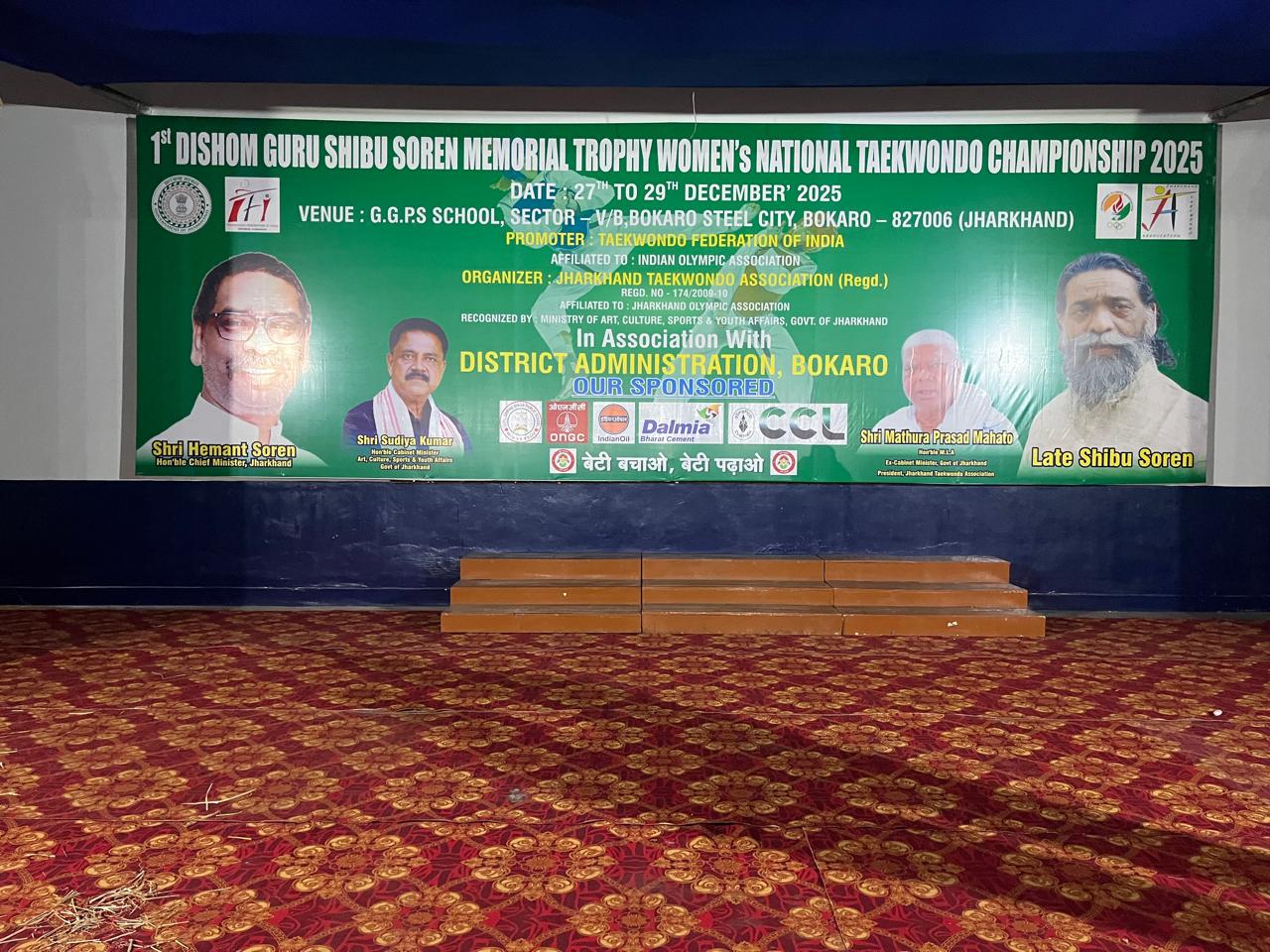 बोकारो स्टील सिटी, झारखंड में खेल प्रेमियों का उत्साह अपने चरम पर है। 27 से 29 दिसंबर 2025 तक बोकारो के सेक्टर-V/B स्थित जी.जी.पी.एस. विद्यालय परिसर में प्रथम दिशोम गुरु शिबू सोरेन स्मृति ट्रॉफी – महिला राष्ट्रीय ताइक्वांडो प्रतियोगिता 2025 का भव्य आयोजन किया जा रहा है। जिला प्रशासन बोकारो और झारखंड ताइक्वांडो एसोसिएशन द्वारा संयुक्त रूप से आयोजित इस प्रतियोगिता के लिए सभी आवश्यक तैयारियां पूरी कर ली गई हैं। देश के विभिन्न राज्यों से महिला ताइक्वांडो खिलाड़ियों की टीमें बोकारो पहुँच चुकी हैं, जिसने शहर में खेलों के प्रति एक सकारात्मक और ऊर्जावान वातावरण निर्मित कर दिया है।