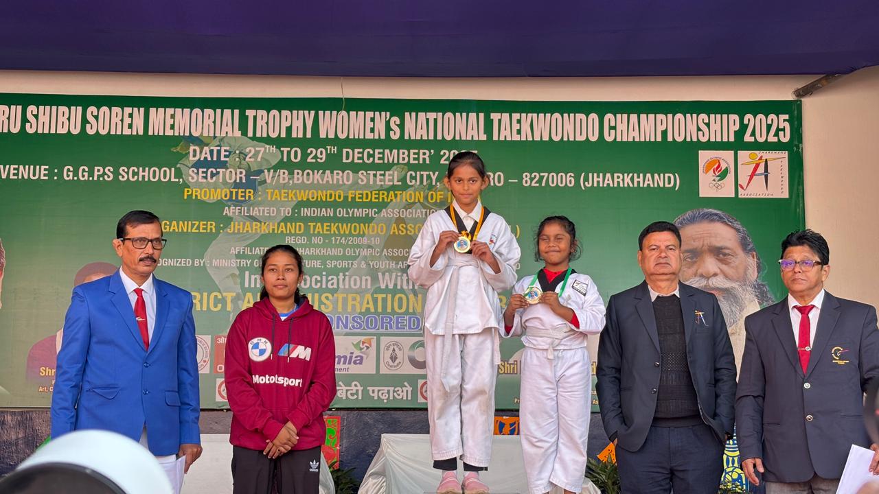 Women’s Taekwondo Championship: खेल की दुनिया में हर दांव एक कहानी कहता है, और हर मुक्का एक जीत का ऐलान। बोकारो की धरती पर चल रहे इस महासंग्राम में महिला खिलाड़ियों का जोश आसमान छू रहा है, जहाँ सिर्फ मेडल नहीं, बल्कि आत्म-सम्मान की लड़ाई भी लड़ी जा रही है। बोकारो स्टील सिटी स्थित जी.जी.पी.एस स्कूल, सेक्टर–V/B में आयोजित पहली दिशोम गुरु शिबू सोरेन मेमोरियल ट्रॉफी – वूमेन्स नेशनल ताइक्वांडो चैंपियनशिप 2025 के दूसरे दिन जूनियर, कैडेट और सीनियर वर्ग के खिलाड़ियों ने शानदार खेल का प्रदर्शन किया। रविवार, 28 दिसंबर 2025 को खेले गए इन रोमांचक मुकाबलों के बाद विभिन्न भार वर्गों में फाइनल एवं निर्णायक परिणामों की घोषणा की गई।