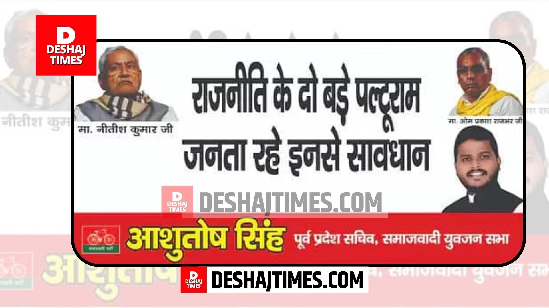 जानकारी के अनुसार, समाजवादी पार्टी (सपा) मुख्यालय के बाहर सोमवार की देर रात पार्टी नेता व पूर्व प्रदेश सचिव युवजन सभा आशुतोष सिंह का एक विवादित बयान वाली होर्डिंग लगाई गई थी। इसमें लखनऊ में सपा कार्यालय के बाहर सपा नेता आशुतोष सिंह ने बिहार के मुख्यमंत्री नीतीश कुमार और राजभर को पलटूराम बताने वाले पोस्टर लगवाए थे।