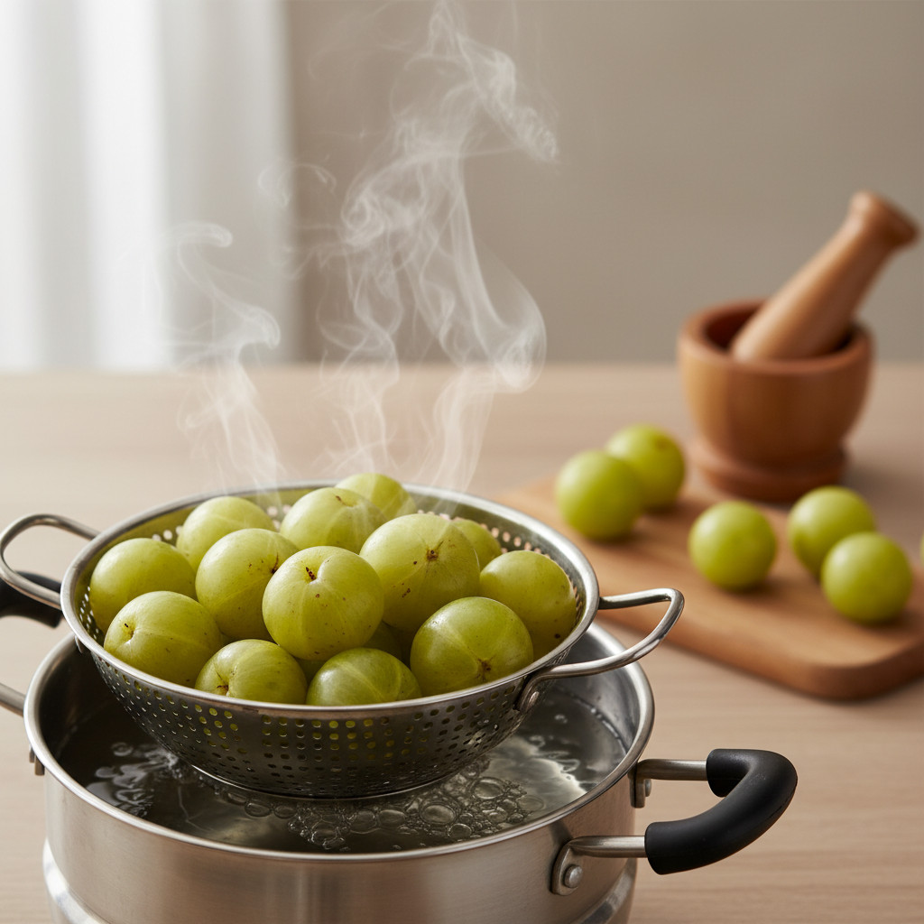 आंवले को भाप में पकाने से उसके विटामिन सी जैसे महत्वपूर्ण पोषक तत्व नष्ट नहीं होते, बल्कि वे शरीर द्वारा आसानी से अवशोषित हो जाते हैं। यह तरीका आंवले के प्राकृतिक गुणों को बनाए रखता है और इसे पचाना भी आसान बनाता है।