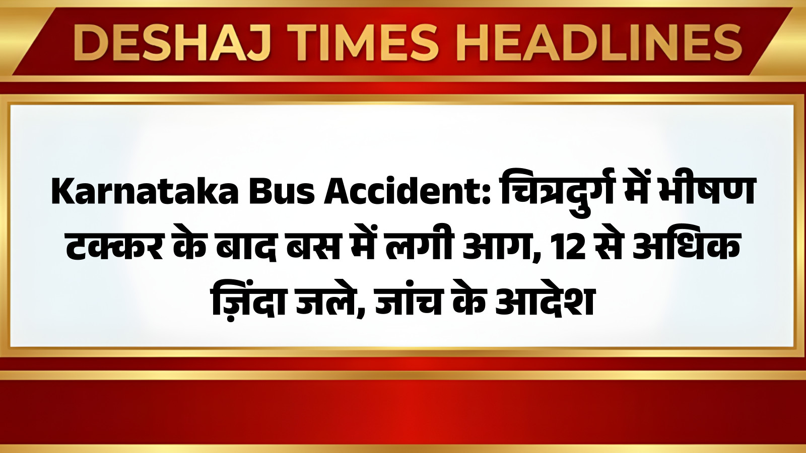 कर्नाटक के चित्रदुर्ग जिले के गोरलाथु गांव के पास राष्ट्रीय राजमार्ग 48 पर गुरुवार सुबह एक निजी बस और लॉरी की भीषण टक्कर के बाद बस में आग लग गई। इस भयानक Karnataka bus accident में 12 से अधिक लोगों के जिंदा जलने की पुष्टि हुई है। प्रारंभिक रिपोर्टों के अनुसार, लॉरी ने बस को टक्कर मारी, जिसके बाद यह भीषण दुर्घटना हुई। कई लोग घायल भी हुए हैं, जिन्हें हिरियूर और चित्रदुर्ग के विभिन्न अस्पतालों में भर्ती किया गया है। हालांकि, अधिकारी मृतकों की संख्या बढ़ने की आशंका जता रहे हैं। इस दुखद घटना के तुरंत बाद, उत्तर पूर्वी रेंज के पुलिस महानिरीक्षक (आईजीपी) बीआर रविकांत गौड़ा और चित्रदुर्ग के पुलिस अधीक्षक (एसपी) रंजीत कुमार बंदारू सहित वरिष्ठ अधिकारी घटनास्थल पर पहुंच गए हैं। आप पढ़ रहे हैं देशज टाइम्स बिहार का N0.1।