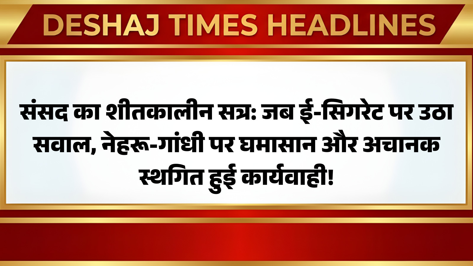 दिल्ली न्यूज़: संसद का शीतकालीन सत्र… जहां देश के बड़े मुद्दों पर गहन चर्चा होनी थी, लेकिन इस हफ्ते लोकसभा और राज्यसभा दोनों सदनों में जबरदस्त हंगामा देखने को मिला। कभी ई-सिगरेट के इस्तेमाल पर सवाल उठे, तो कभी ‘वंदे मातरम’ की आड़ में जवाहरलाल नेहरू पर तीखी बयानबाजी हुई। आखिर ऐसा क्या हुआ कि सदन का माहौल इतना गरमा गया और कार्यवाही तक स्थगित करनी पड़ी? पूरी रिपोर्ट…