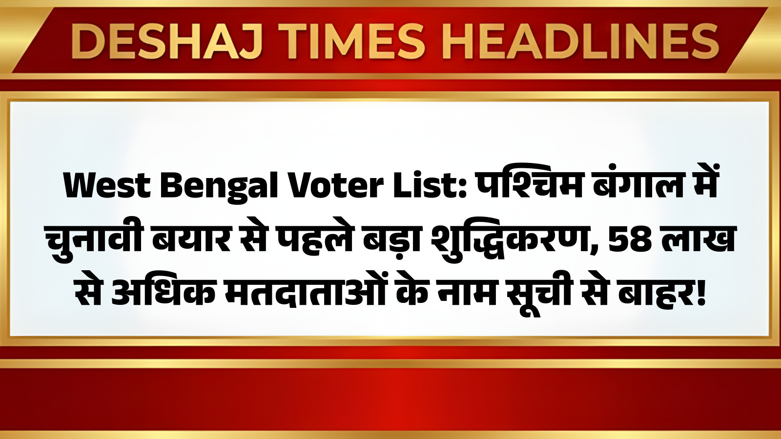 West Bengal Voter List: चुनावी समर से पहले हर राज्य में बिसात बिछाई जाती है, और इस बार पश्चिम बंगाल में मतदाताओं की संख्या पर एक बड़ा मंथन देखने को मिल रहा है। आगामी पश्चिम बंगाल विधानसभा चुनावों से पहले, राज्य की मतदाता सूची से कुल 58.8 लाख मतदाताओं के नाम हटाए जाने की संभावना है। निर्वाचन आयोग द्वारा चलाए गए विशेष गहन संशोधन (SIR) अभियान के तहत, मतदाता सूची को त्रुटिहीन बनाने का प्रयास किया जा रहा है। नवीनतम जनगणना प्रपत्रों के आंकड़ों के अनुसार, कुल 58 लाख 8 हजार 202 नामों को सूची से हटाने की तैयारी है। गुरुवार देर रात तक चली गणना के बाद, यह संख्या 58,08,002 तक पहुंच गई है। आप पढ़ रहे हैं देशज टाइम्स बिहार का N0.1।