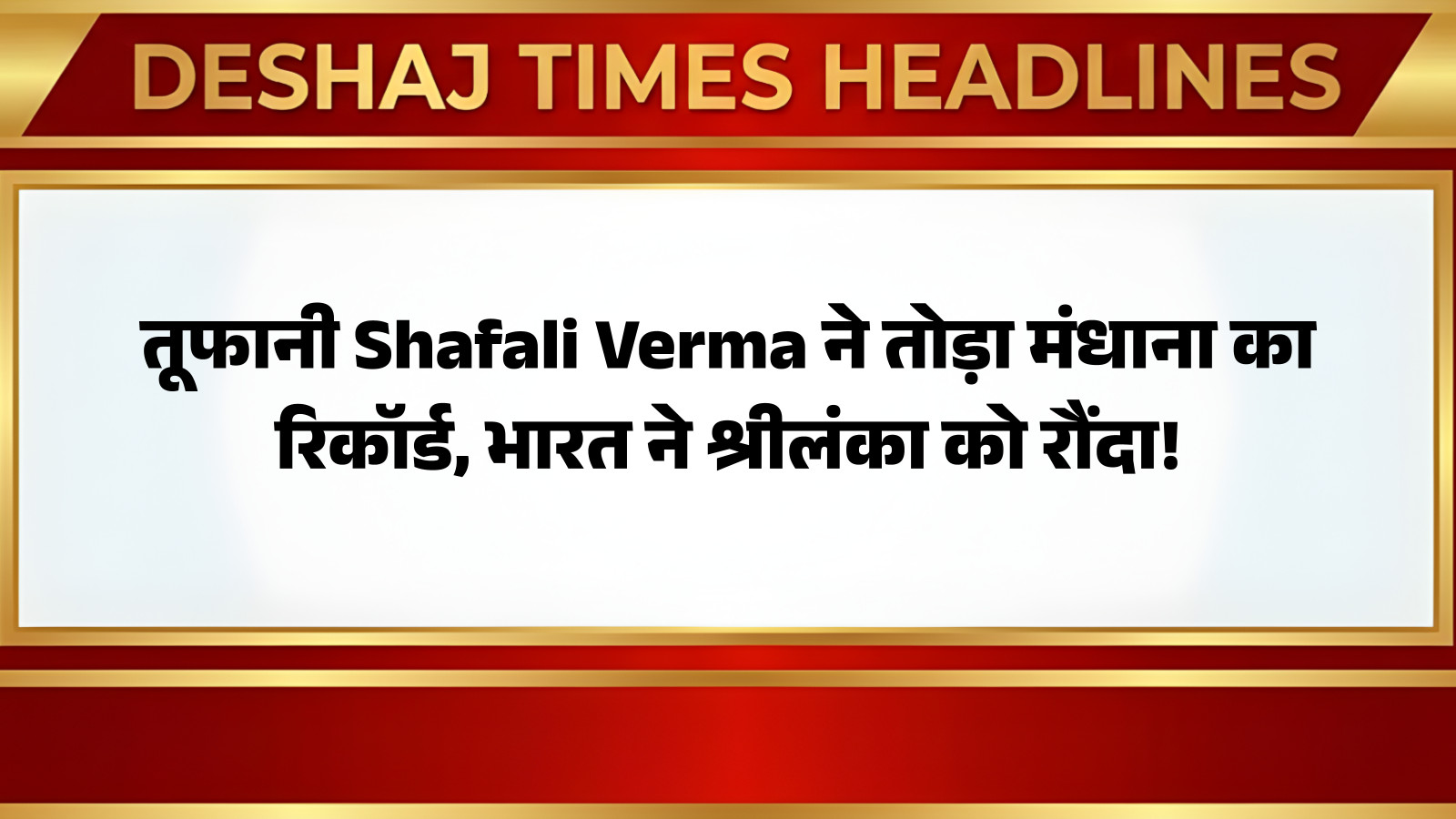 शेफाली वर्मा ने सिर्फ 34 गेंदों में नाबाद 69 रनों की धमाकेदार पारी खेली, जिसमें उनके बल्ले से कई शानदार चौके और छक्के निकले। उनकी इस ताबड़तोड़ पारी ने भारतीय टीम को महज 12वें ओवर में ही जीत दिला दी। यह उनकी करियर की एक और यादगार पारी थी, जिसने उन्हें प्लेयर ऑफ द मैच का खिताब दिलाया। आप पढ़ रहे हैं देशज टाइम्स बिहार का N0.1।