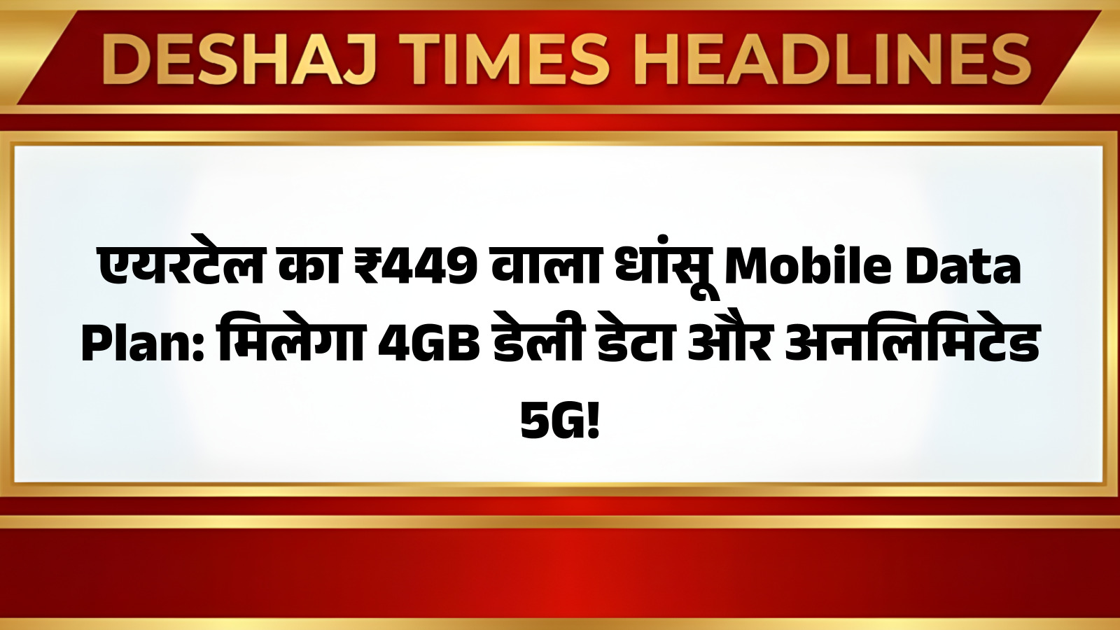 एयरटेल का ₹449 वाला धांसू Mobile Data Plan: मिलेगा 4GB डेली डेटा और अनलिमिटेड 5G!