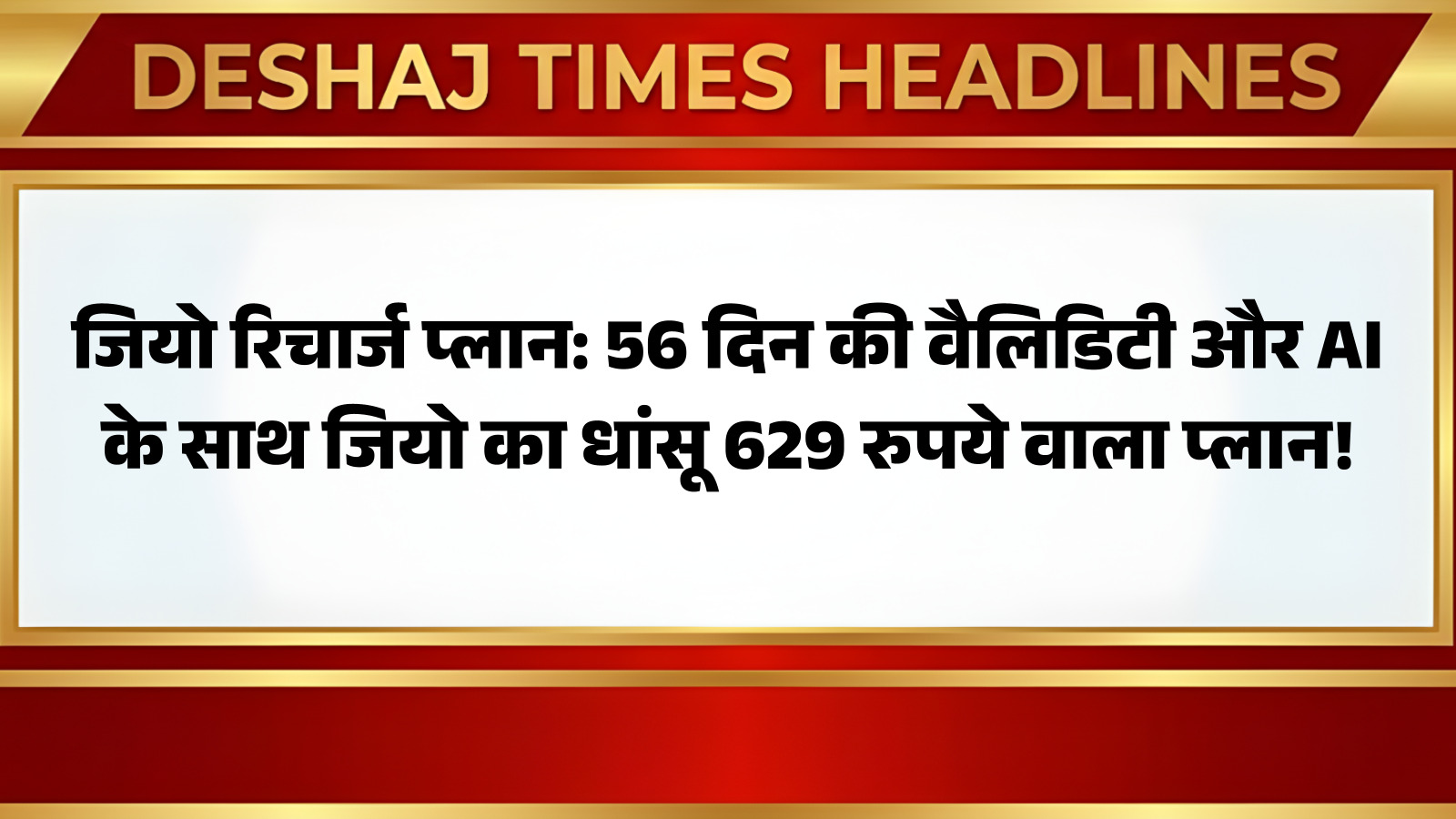 जियो रिचार्ज प्लान: 56 दिन की वैलिडिटी और AI के साथ जियो का धांसू 629 रुपये वाला प्लान!