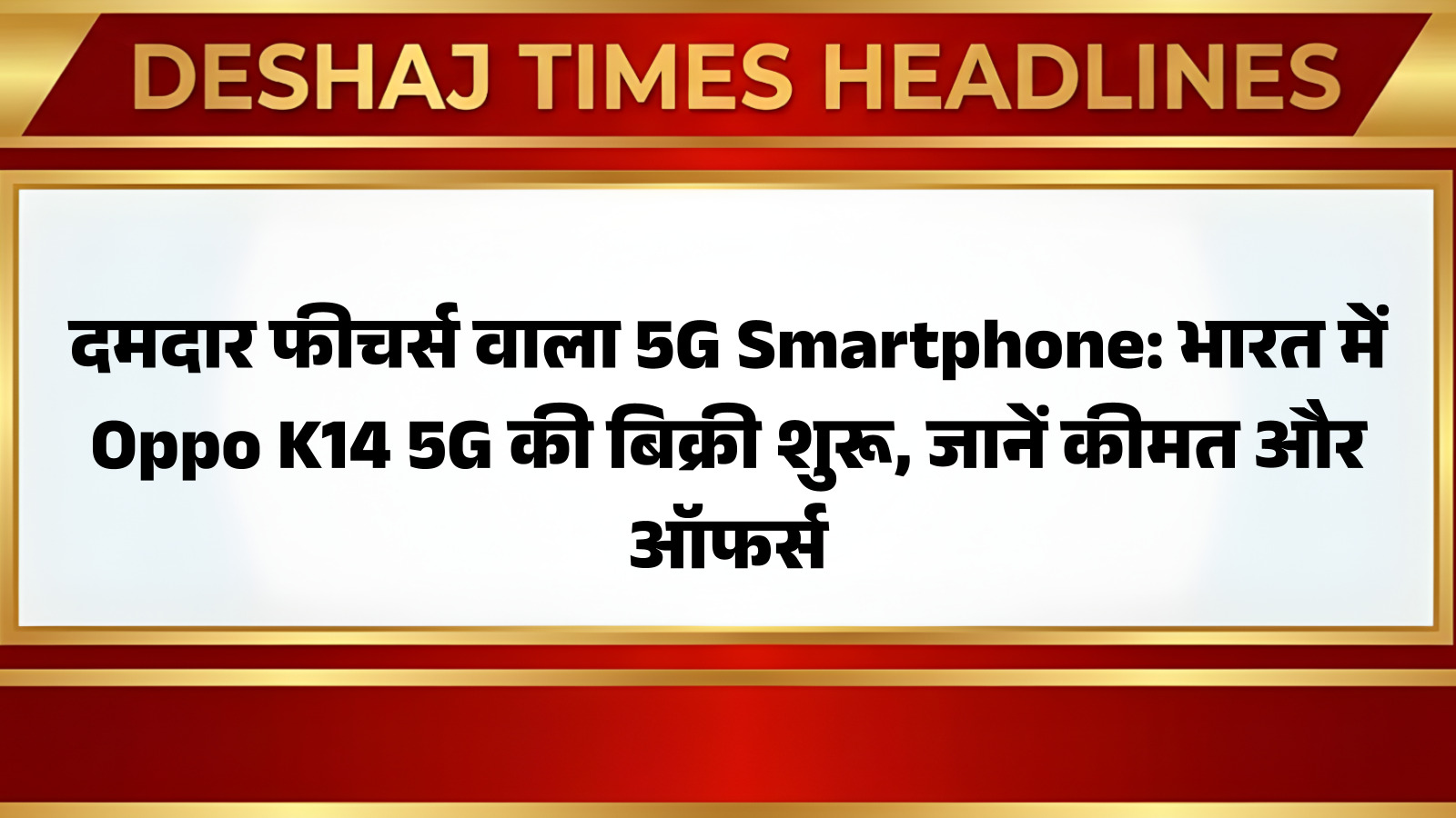 Oppo K14 5G अब भारतीय उपभोक्ताओं के लिए खरीद के लिए उपलब्ध है। इस लेटेस्ट 5G Smartphone की शुरुआती कीमत ₹17,999 रखी गई है, जो इसे मिड-रेंज सेगमेंट में एक आकर्षक विकल्प बनाती है। आप पढ़ रहे हैं देशज टाइम्स बिहार का N0.1। यह फोन उन ग्राहकों के लिए एक बढ़िया अवसर है जो 5G कनेक्टिविटी के साथ-साथ एक विश्वसनीय डिवाइस की तलाश में हैं।